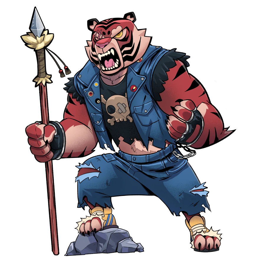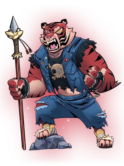 Jinzo is an expert martial artist who uses “ki” and “spirit” energy. Jinzo is an adrenaline junkie nomad from forgotten lands. He belongs to the peaceful tribe of cosmic cats known as the “Uruk Claws”, but he got tired of that meditation bullshit and now roams the world in search of a worthy challenge.